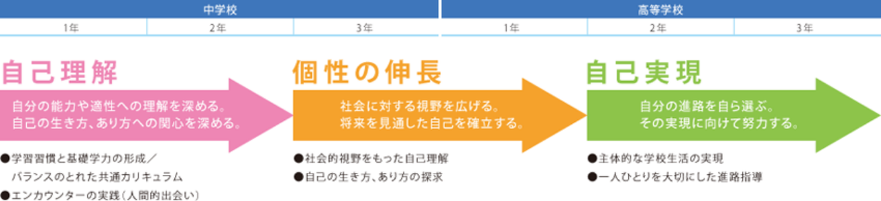東京女学館がめざす「人と社会に貢献する女性」の育成。それは教育目標に基づき、各教科と学年行事、自国文化理解授業などにより「自己実現」に向けた中高一貫教育として展開しています。