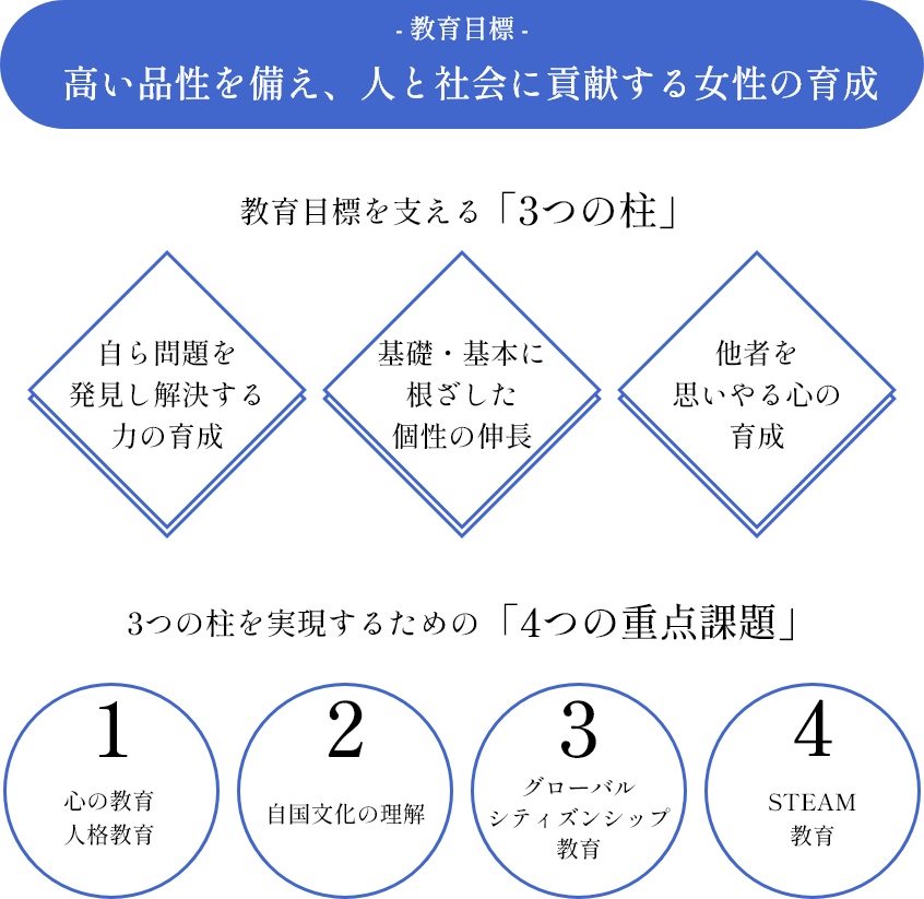 高い品性を備え、人と社会に貢献する女性の育成