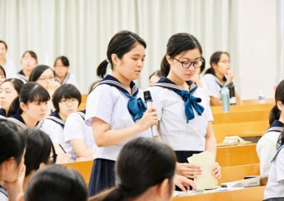 国際学級の英語は、ケンブリッジ国際カリキュラムを導入し、中学で習熟度別3分割、高校で2分割の少人数授業を展開しています。 高校では豊富な選択授業を用意し、海外大学進学を見据えた多様な進路や、変化し続ける入試スタイルに対応しています。
