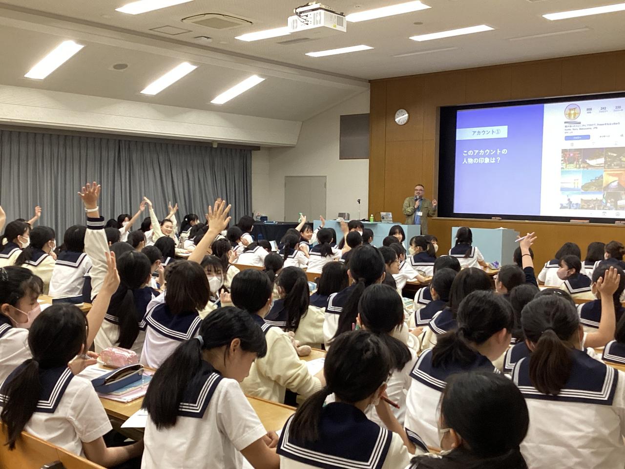 高校では、『外国の人々と英語を使って協力し、課題解決ができる力』の育成を目指します。リーディングやライティングを通じて、世界の問題について英語で学び考える機会が多くあり、英語で理解し、自分の意見を交えながら説明できるようになることを目指します。高三では入試問題集も授業に多く取り入れ、大学入試対策に万全を期しています。将来英語を使って「人と社会に貢献する」ことができるよう、実用的な英語力、難しい課題にあきらめず挑戦する意識、地球規模の問題に対して目を向ける姿勢を授業を通して育んでいきます。