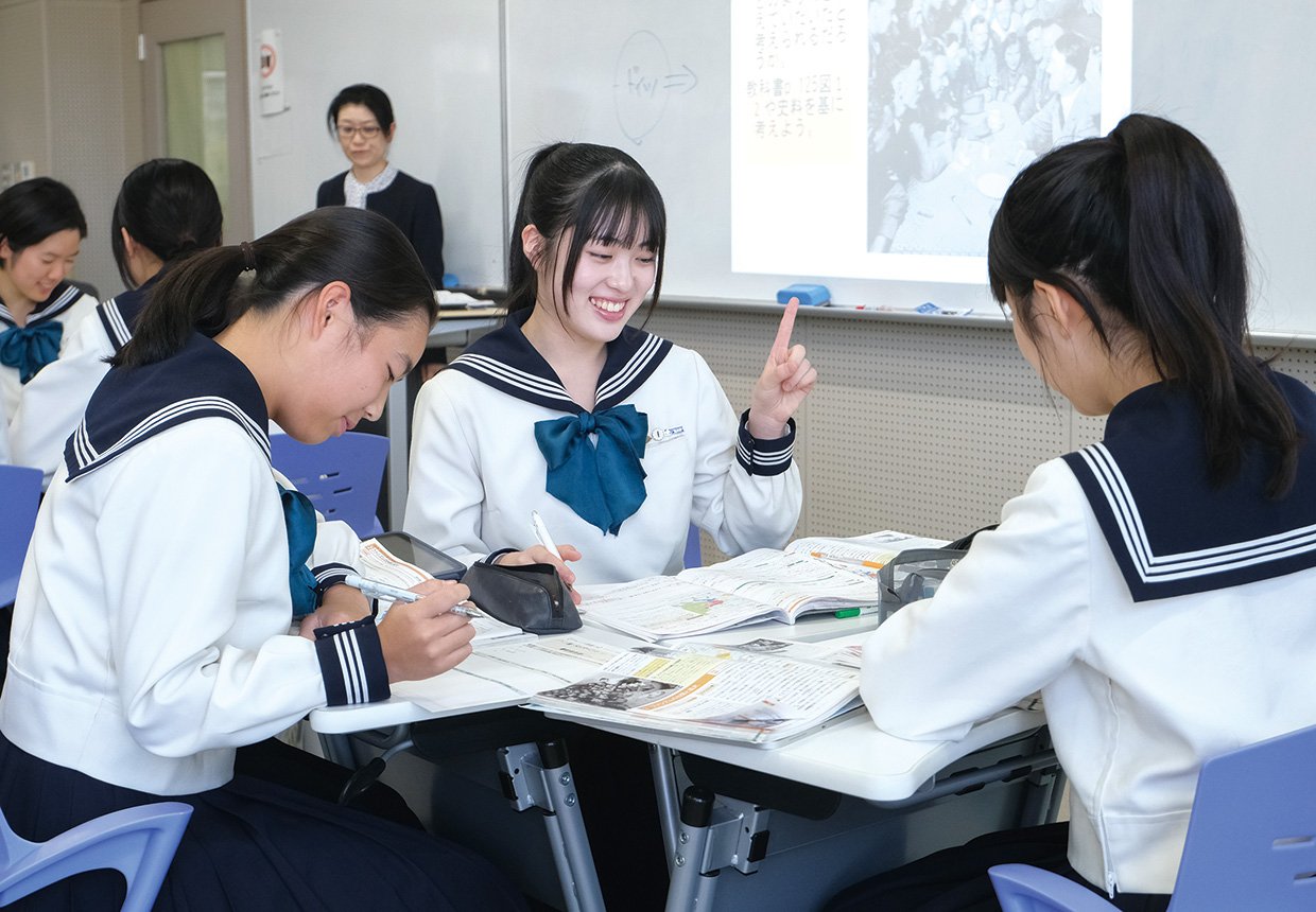 中1の地理の授業から、自分たちで相談しながら内容を理解し、得られた知識をもとに深く考える姿勢を身につけられるよう促します。中2の歴史を経て、中3の公民では新聞を読み込むニュースノートの取り組みや、NPOや国連機関など外部団体と関わる社会貢献学習などを通して、現代社会が抱える課題を多角的に理解し、解決への道筋を自ら考えます。中高を通じて、教室の中だけでの知識習得に留まらずに、世界の広さや多様性、その複雑さを知り、自ら考え判断する力を養うことが本校の社会科の学びの特長です。