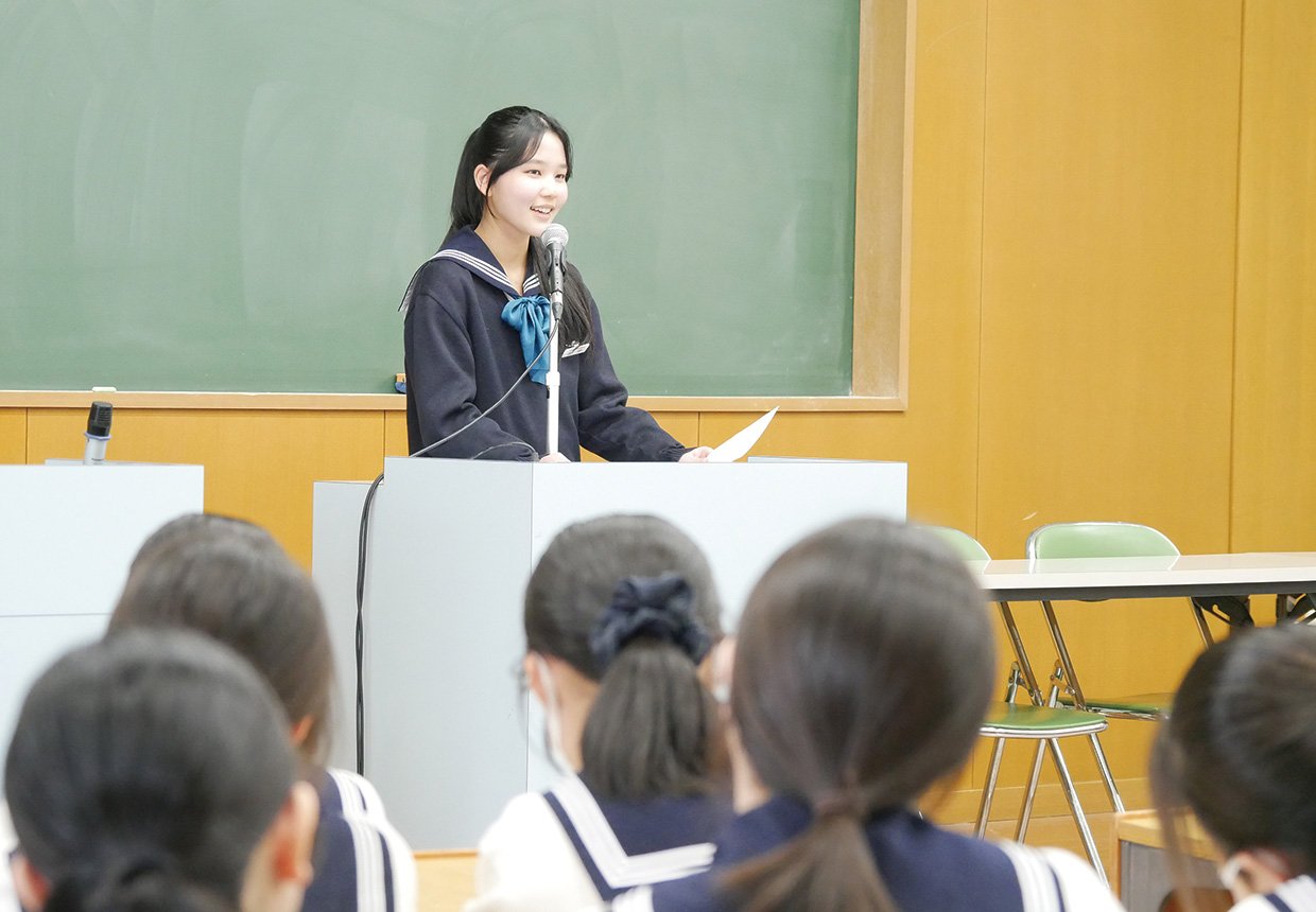 読む、書く、聞く、話す、プレゼンテーションする。この5技能をバランスよく磨いていきます。国語は、自己を確立するための手段であり、同時に他者と関わるための手段でもあります。さらには自分の世界を拡げるための学びであるので、自らの考えを深め、まとめ、その考えを表現する機会を授業の中で多く設けています。例えば中学の弁論大会も思考を深める学びの一つです。多様な進路に対応する指導も含め、日々の取り組みで「自分自身」を確立することを促すのが本校の国語科の特長です。