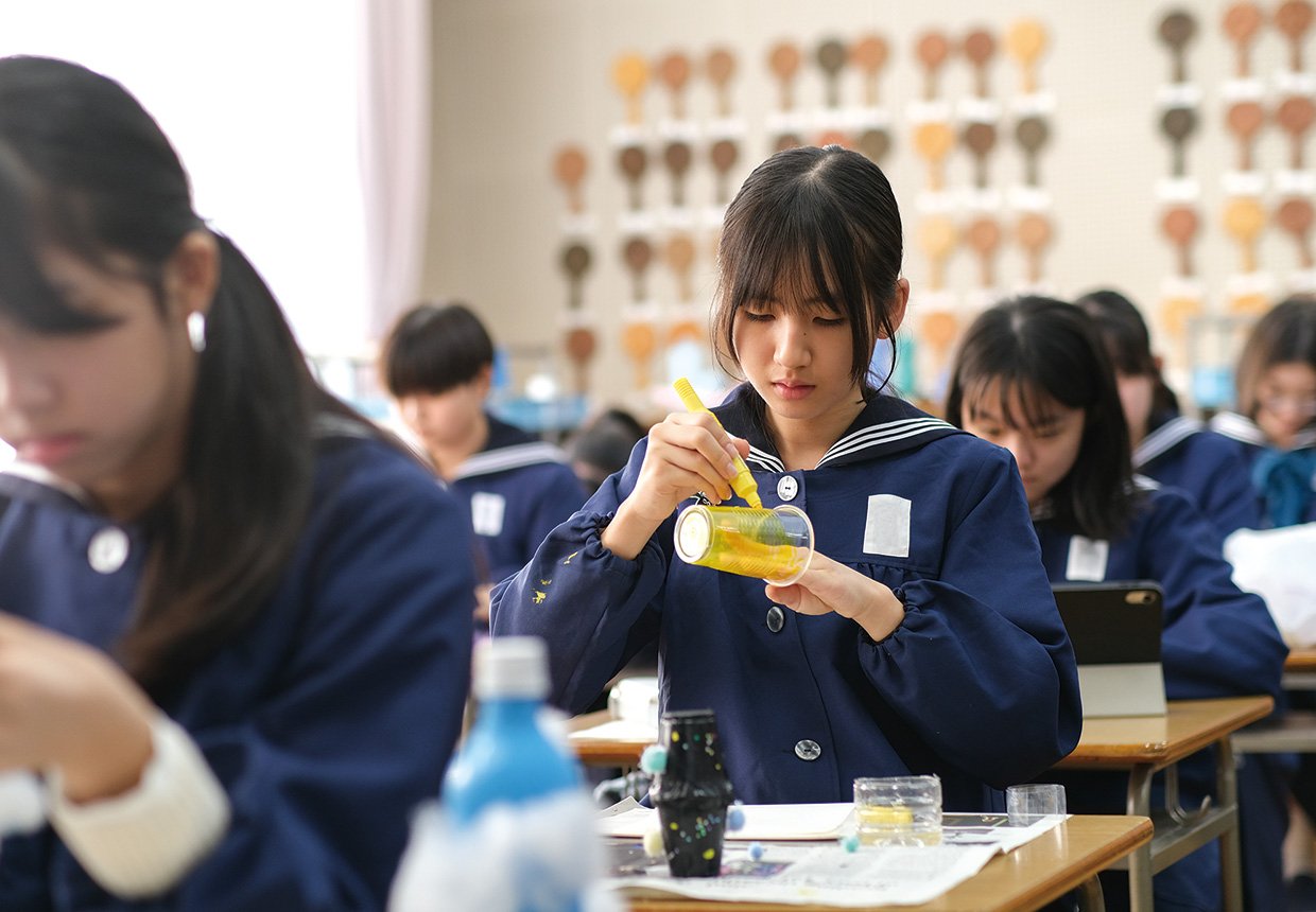自然科学への興味関心は、多くの実験・観察によって培われることを踏まえ、中学では授業時間の約半分を実験にあて、高校でも学習講座も含めて年5〜6回ほど実験を行います。1回の授業内で完結するものだけでなく、半年かけて観察し続ける実験もあり、経過観察の重要性を認識するとともに多角的な観察眼も養います。「なぜだろう?」と疑問を持ち、一つの答えを得てもさらに疑問を拡大して学びの幅を広げられる力を養い進路実現へ繋げていきます。