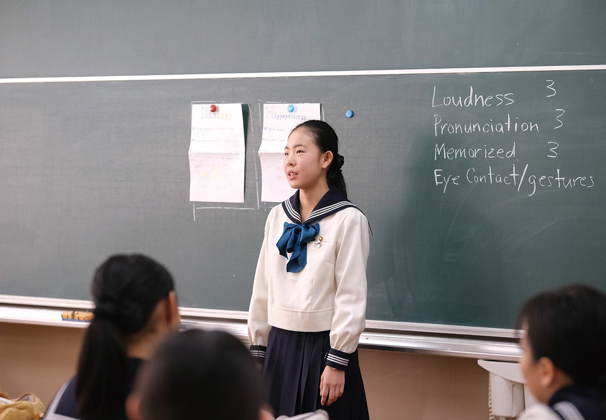 文法や語彙の土台を築きながら、読む、聞く、話す、書くの言語活動をバランス良く取り入れ、実践的な英語運用能力を養います。中学3年生までに全員が英検2級をクリアできることを目標とします。グループワーク・プレゼンテーションなど欧米スタイルの活動や協働学習を取り入れています。