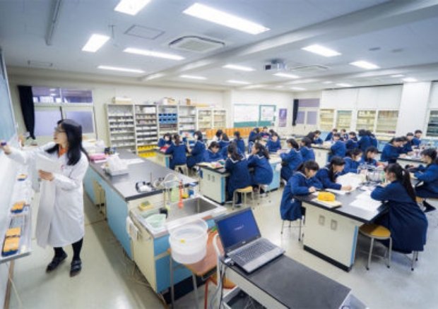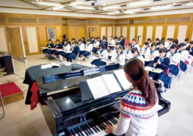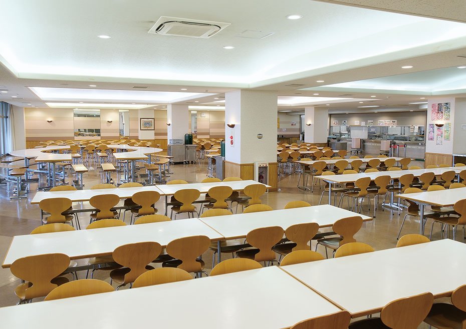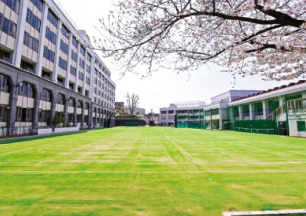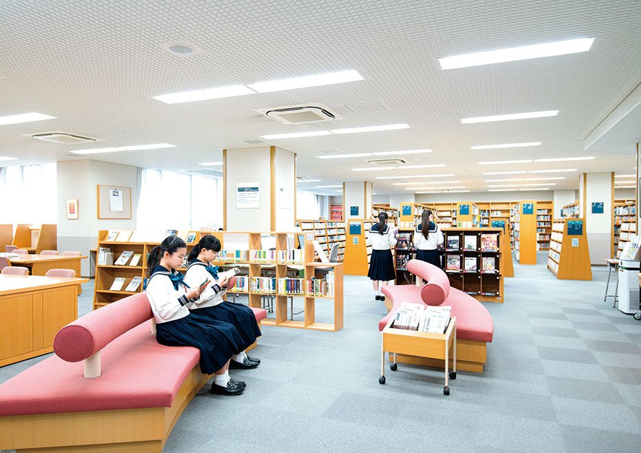特別教室や体育館やプール、グラウンドなどの運動施設のほか、約60,000冊の蔵書を誇る図書館、明るく清潔な食 堂。そしてフルコンサートピアノを備えた記念講堂など充実した学校施設。