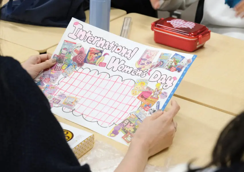 3月8日の女性の権利拡大を訴える象徴的な日、国際女性デーにちなんで国際学級でマザーズランチを行いました。私たちの一番近くにいる代表的な女性であるお母様方と交流させていただき、生徒と一緒に昼食を食べました。3人のお母様方にはプレゼンテーションもしていただき、とても良いインスピレーションを受けました。5つの班に分かれて班のお母様方に質問をしたり、製作したランチョンマットもプレゼントしました。非常に充実した時間になりました。お母様方も本当にありがとうございました♪ いただいたアドバイスはこれからの日々に活かしていきたいです!