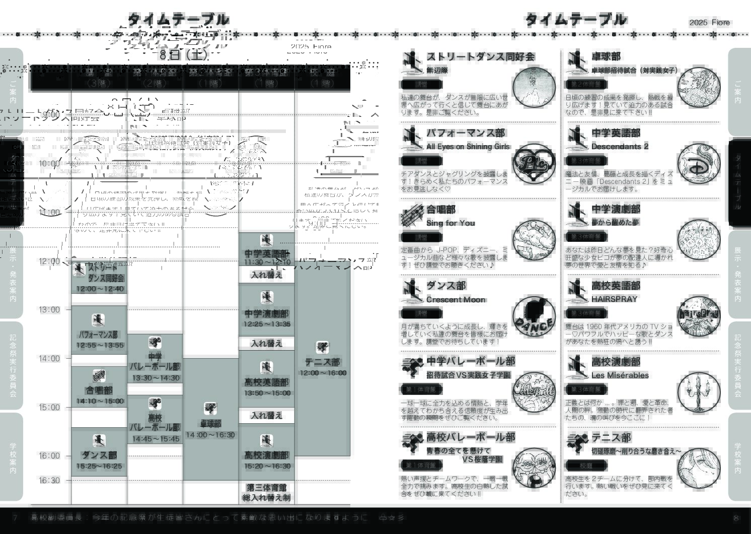 今年度の記念祭実行委員会が掲げるテーマは、「Fiore(フィオーレ)」。「Fiore」はイタリア語で「花」を意味します。「花びらは生徒一人ひとりの個性を表し、その個性が集まって一つの大きな花のように輝く記念祭になるように」との想いが込められています。