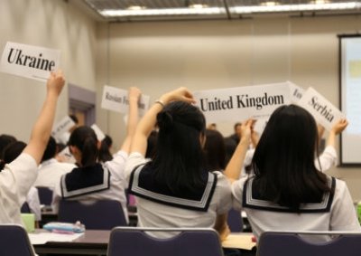 数年前のことです。当時の中学3年生数名が教員のもとを訪れ、「模擬国連に参加してみたい!」と申し出てきました。彼らは教員を説得するためのパワーポイントまで用意し、熱意に満ちた眼差しで参加の意義について語り始めたのです。彼らの熱意を受け、英語科と社会科の教員が活動の後押しをすることになりました。以上のように、本校における模擬国連委員会は、生徒の自主性・主体性から生まれたものなのです。